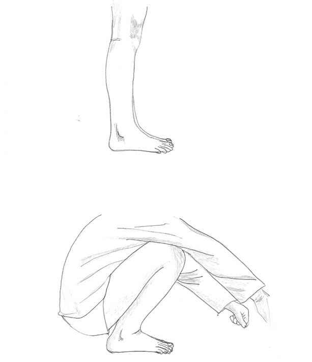 Siéntate en el suelo con las piernas estiradas. Realiza dorsiflexión de tobillos (llevar la punta de los pies hacia arriba). Intenta que las rodillas no se flexionen. Mantén unos segundos y relaja. Repite en series de 10. Este ejercicio puedes realizarlo con ambas piernas a la vez o alternándolas. Fig.1